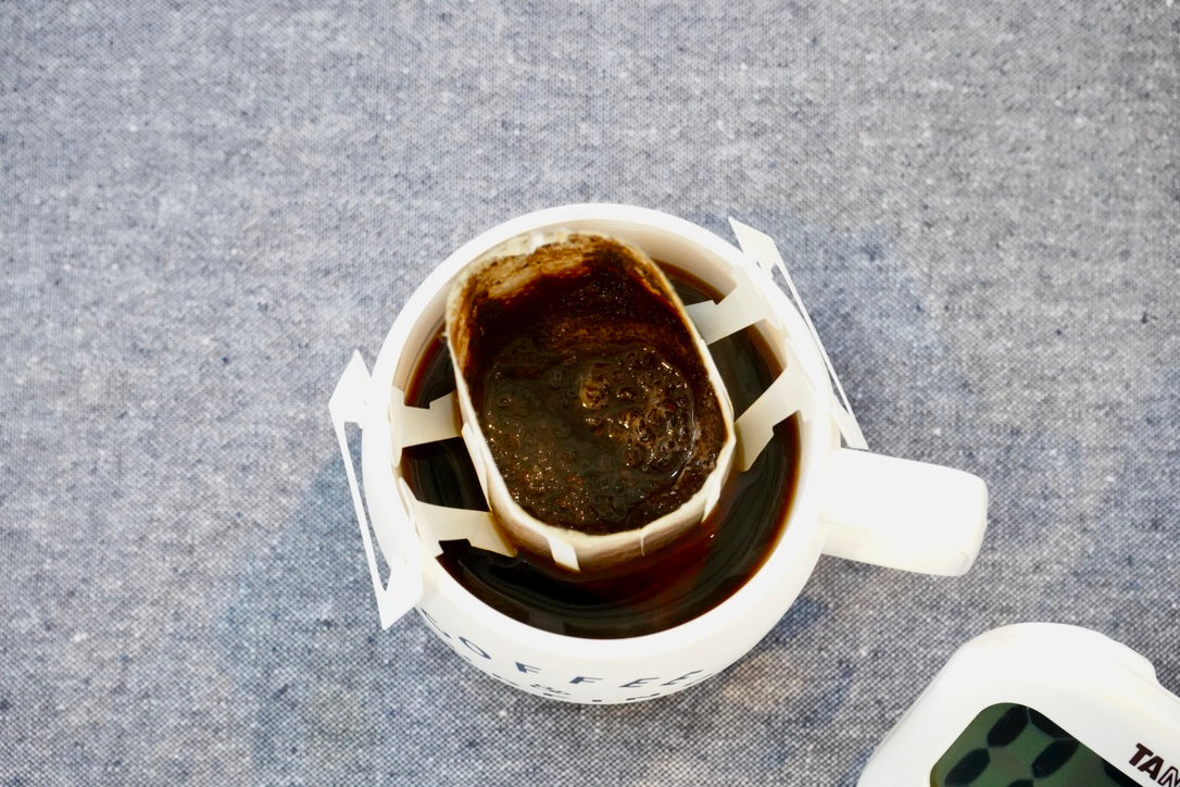 この状態でお湯を勢いよくかき混ぜたりしない限り、コーヒーが濃くなったり、雑味がでたりすることはありません。