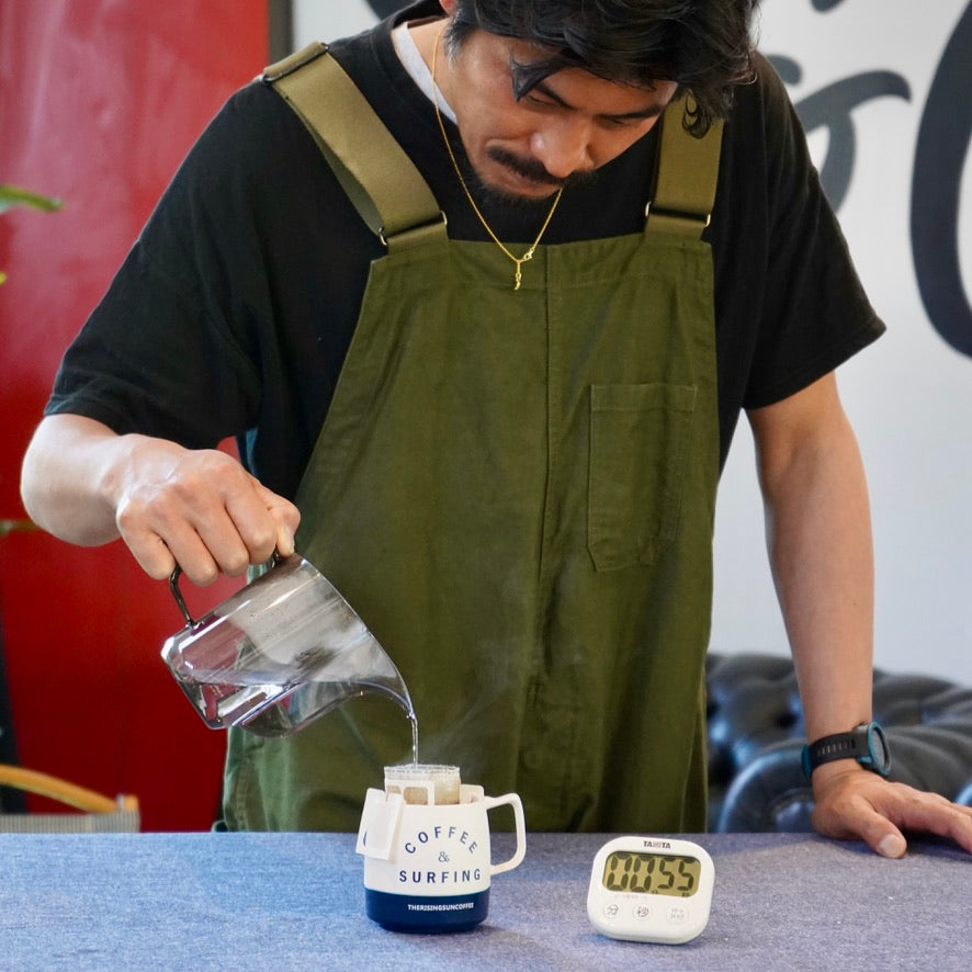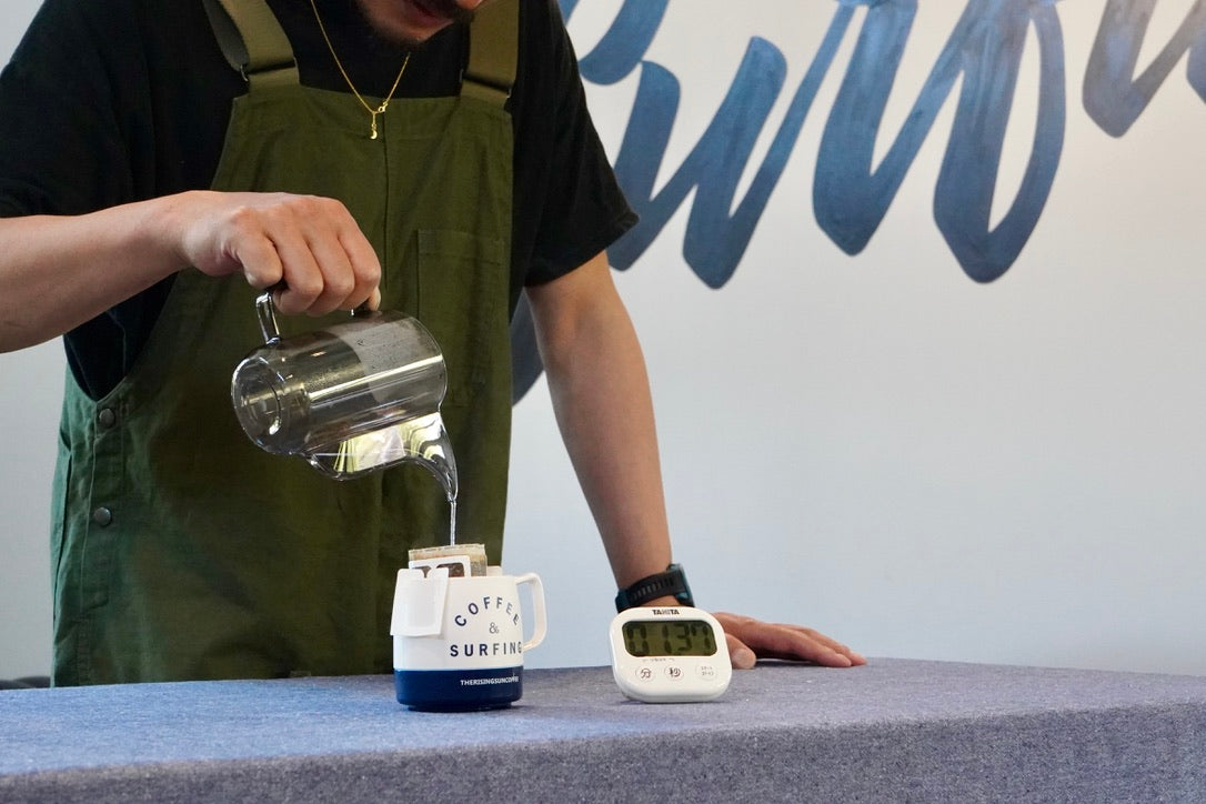 ドリップバッグの場合、粉量と挽目が決まっているので、こちらのケトルで湯量を計ってしまえば、どなたでも美味しいコーヒーを淹れることができます。