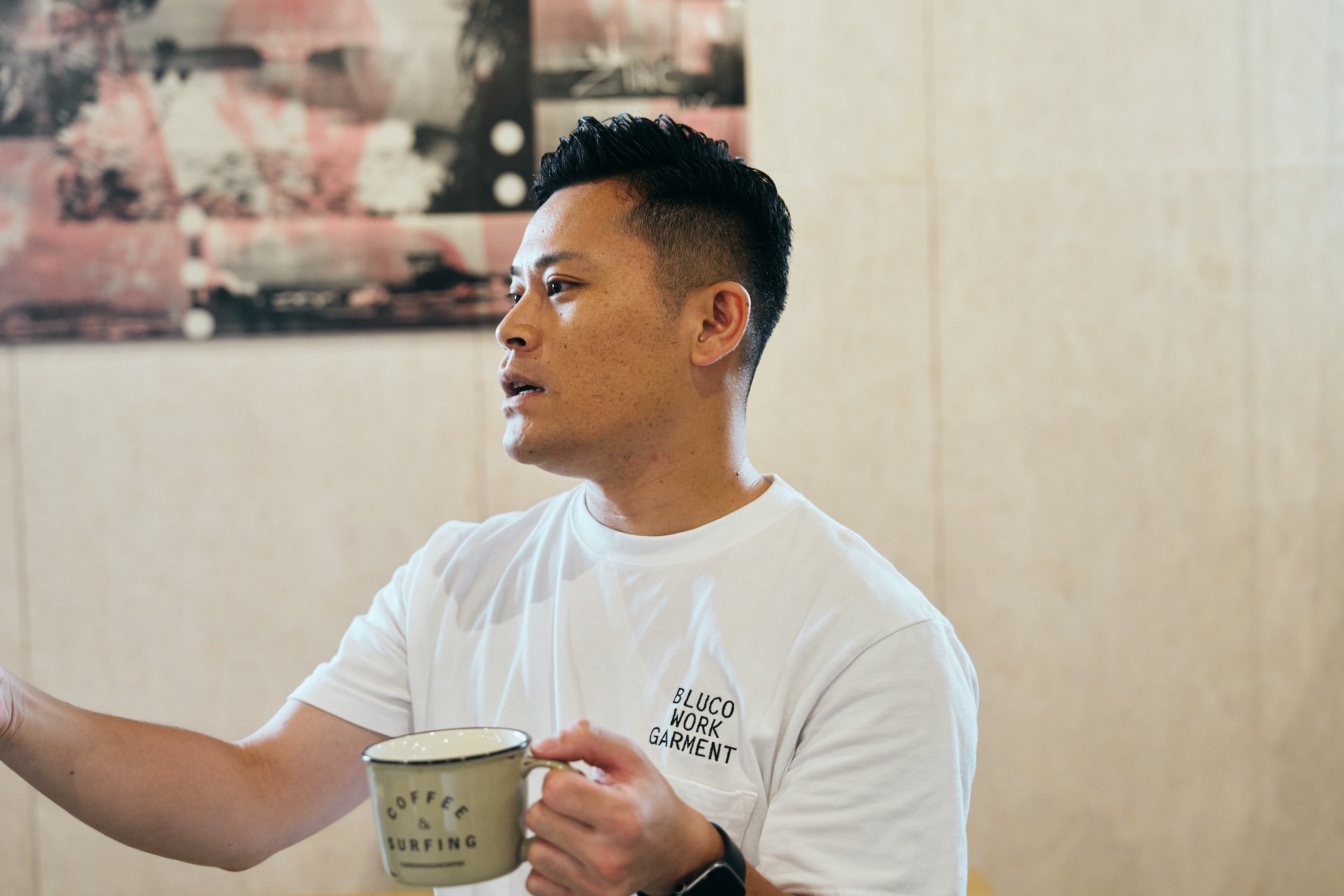 大学在学中、部室内でコーヒーを振る舞ったり、味わいを共有することで、コーヒーに興味を持ってもらえたことに幸せを感じ、コーヒーを仕事にすることを決意する。
