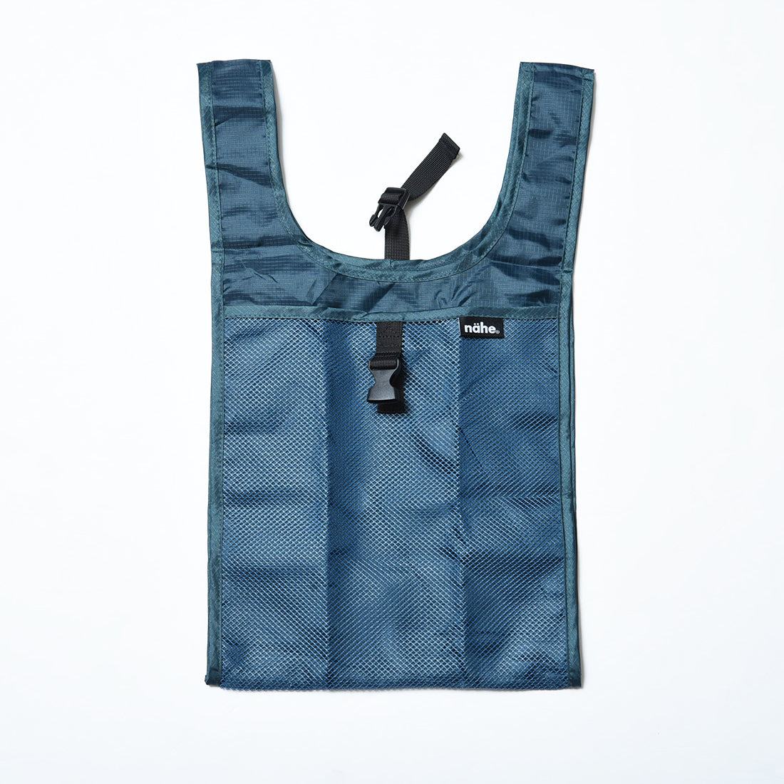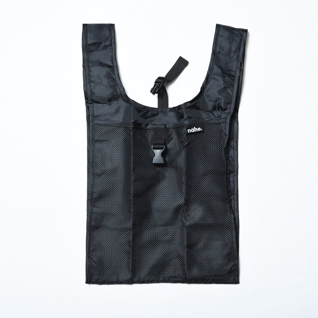 容量は2Lのペットボトルが6本分入る大きさ、メッシュポケットには生鮮食品とは分けて入れたい財布やスマートフォンなどの手回り品を収納出来ます。上部バックルを留めることで開口部が開きませんし、携帯時はくるくる丸めてコンパクトに収納出来ます。一番の問題点であった持ち手の強度もより強くしたので重い荷物にも対応します!