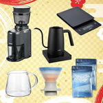 ハンドドリップに最適な中細挽きから粗挽きまで挽目を調整できる電動グラインダーに、 1℃単位で湯温を設定できる電気ケトル、時間やグラムを計ることのできるスケールなど、より本格的にドリップコーヒーを始めたい方向けのセット。
