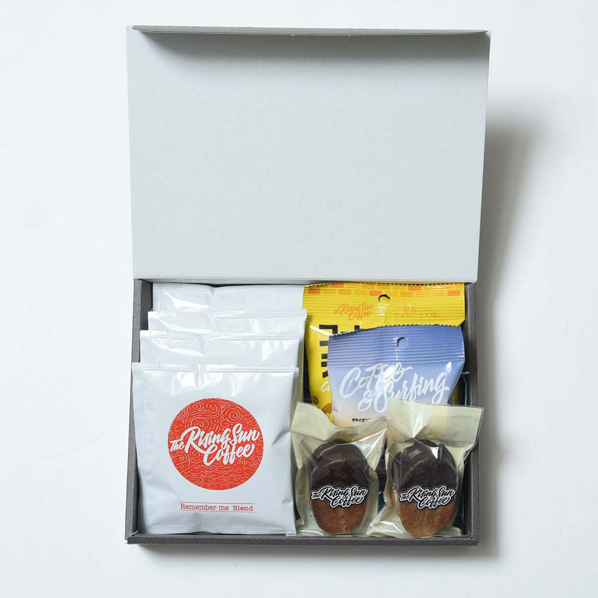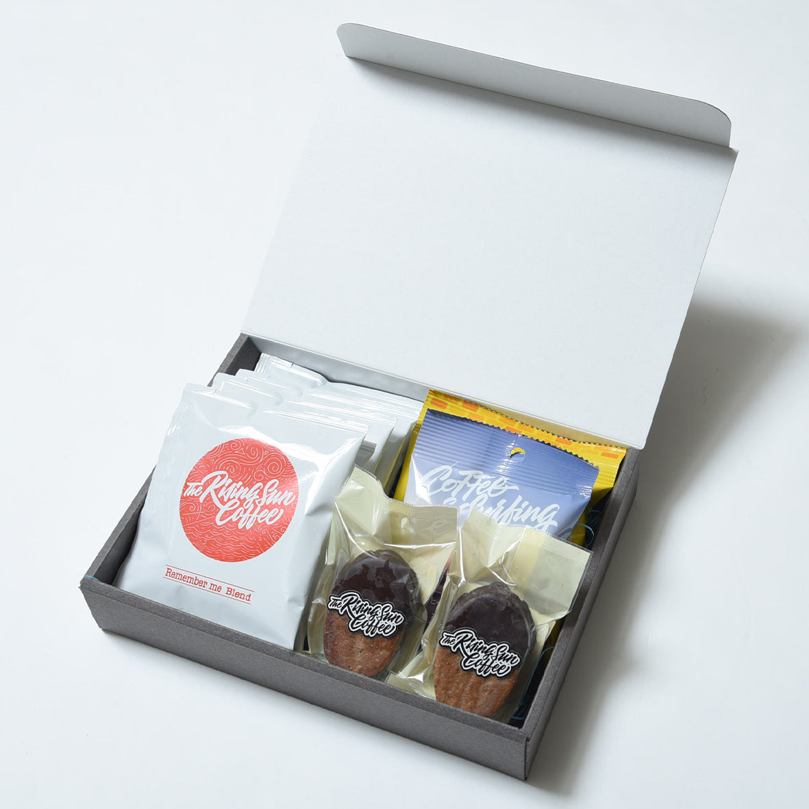 毎年ご好評のリメンバーミーブレンドのドリップバッグに、コーヒーとの相性抜群の 3種類のオリジナルスイーツをバランスよく詰め合わせました。